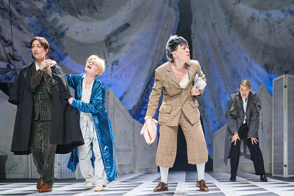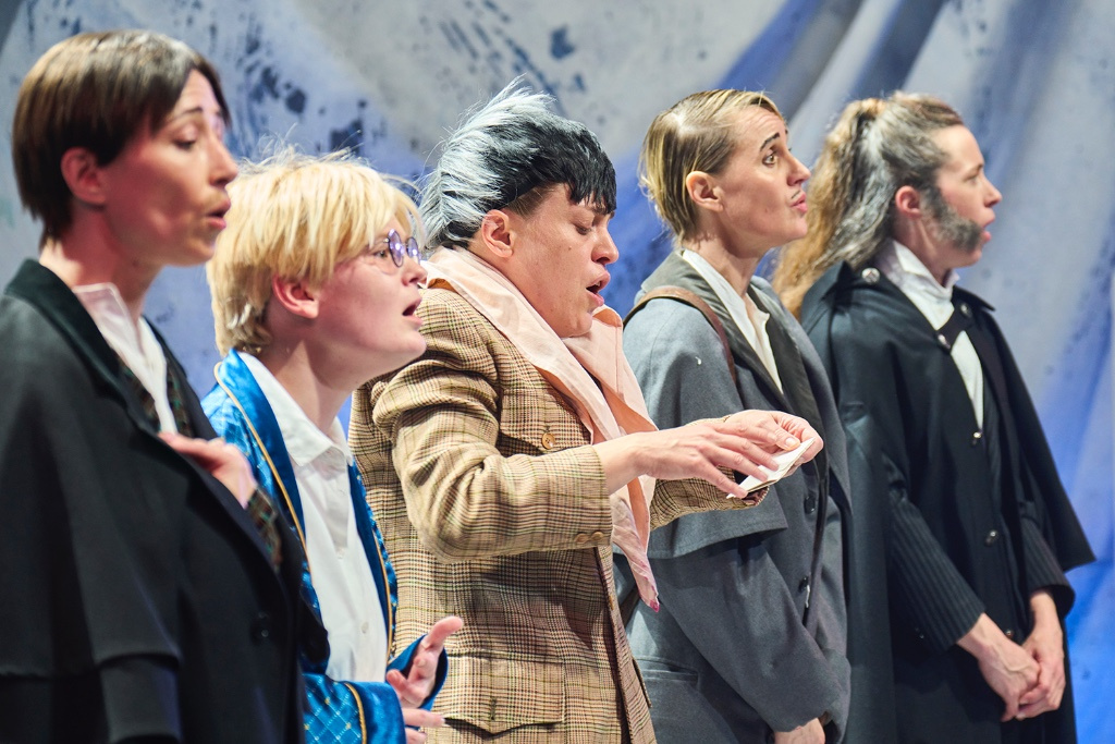 Die Literaturnobelpreisträgerin Olga Tokarczuk antwortet mit ihrem Roman böse und unterhaltsam auf Thomas Manns 100-jährigen Zauberberg und erzählt von ausrangierten Männern, die alles Andersartige vereinnahmen und unterwerfen möchten. Ein fünfköpfiges Frauenensemble nimmt sich ihrer Erzählung an und spielt diese verlorenen Männer auf Kur mit Humor, Leidenschaft und Tiefgründigkeit. So entsteht unter der Regie von Antú Romero Nunes ein Abend über Männer, die sich selbst vernichten, gespielt von Frauen, die uns einen möglichen Ausweg zeigen.