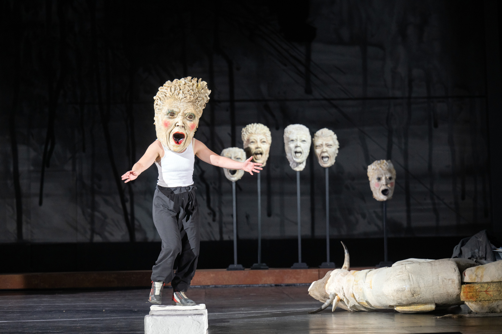 Po smrti Penthea a převzetí moci Labdakem, dalším vnukem Kadma, nastává v Thébách období plné násilí. Nakonec je přiveden zpět z exilu a dosazen na trůn Labdakův syn Láios. Nepřichází však sám, doprovází ho mladý Chrýsippos z Písy. Je příčinou bezdětnosti nového královského páru Láia a Iokasté právě on, nebo je to přece jen proroctví věštkyně Pýthie? A pak se před branami města objevuje další stvoření: sfinga, zvířecí bytost stvořená ze lva, ženy a ptáka, která svým zpěvem a hádankami dohání město k vražednému šílenství. Ve vysoce poetickém monologu, v němž se dostávají ke slovu různé postavy a s nimi i různé úhly pohledu a mýtické varianty příběhu Oidipova otce, se inscenace zabývá otázkou, co mohlo navzdory náboženskému zákazu přimět dvojici Láia a Iokasté, aby zplodili potomka. Jakou odpovědnost nesou rodiče za osud svého dítěte Oidipa, kterého hned po narození chtěli nechat zmizet někde v horách? Kolik viny se dědí z generace na generaci a kolik svobody má jednotlivec, aby se z ní osvobodil?